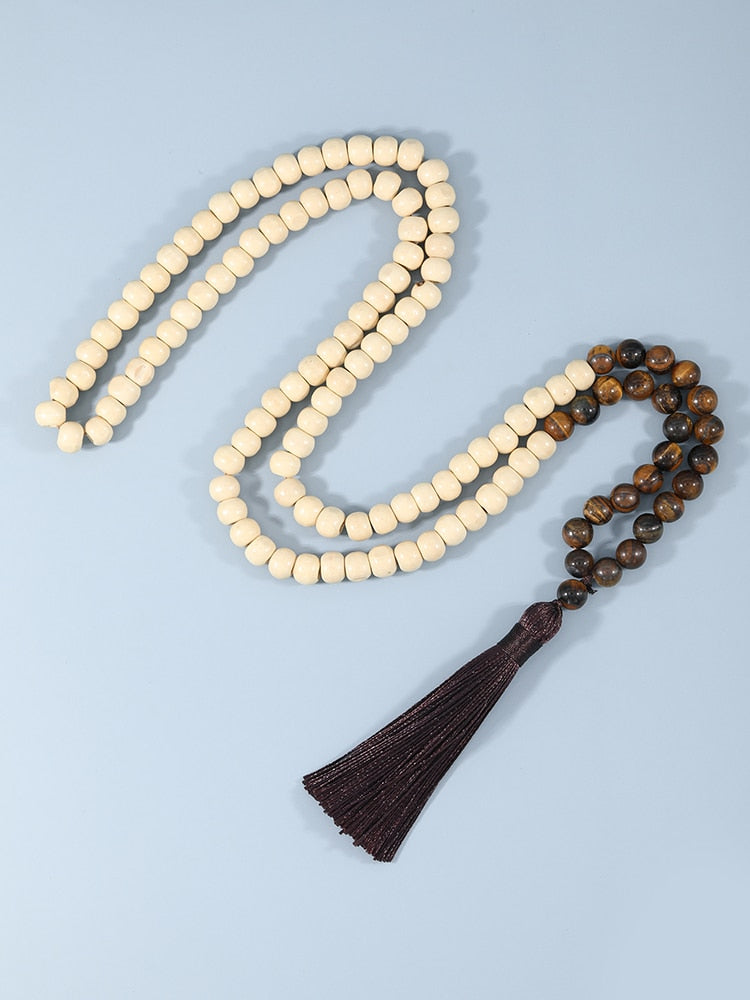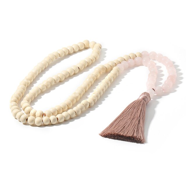 Japamala Natural 108 Contas Em Madeira Com Critais